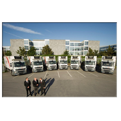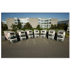 The fleet consists of 13 high spec rigid trucks - 7 Daf55 and 6 Volvo. All trucks are dual-temp for the purpose of carrying frozen and chilled products.